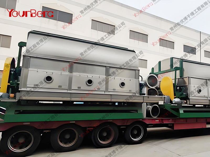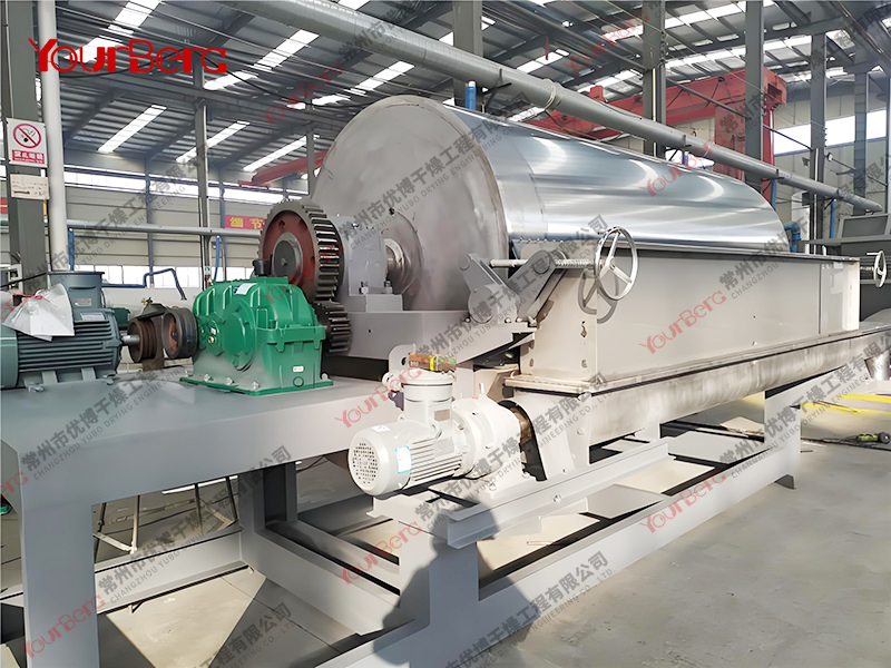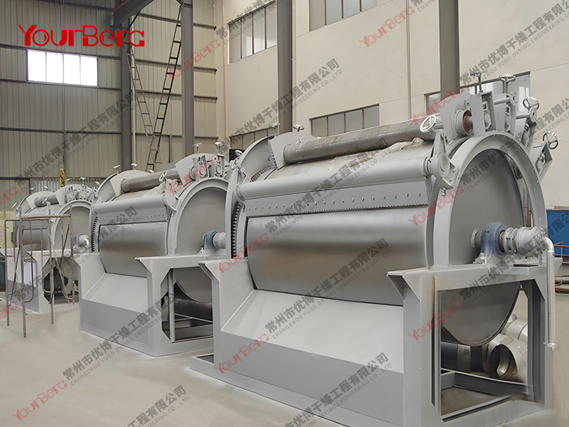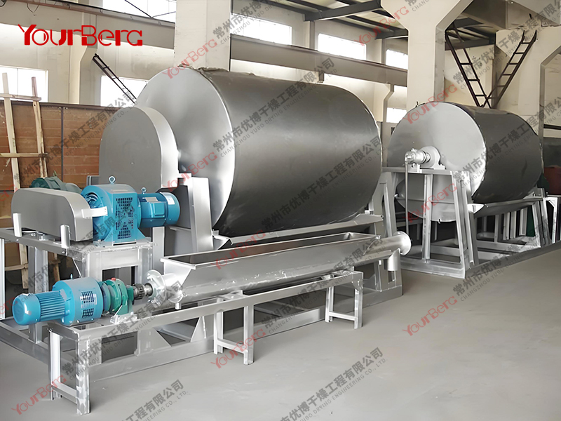 3、干燥時間短。物料的干燥周期一般只有10-300秒,在適合于熱敏性物料。若將滾筒干燥機設置在真空器中,則可在減壓條件下運行。