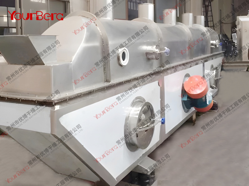 普通流化床干燥機在干燥顆粒物料時,可能會存在下述問題:(1)當顆粒粒度較小時形成溝流或死區;(2)顆粒分布范圍大時夾帶會相當嚴重;(3)由于顆粒的返混,物料在機內滯留時間不同,干燥后的顆粒含濕量不均;(4)物料濕度稍大時會產生團聚和結塊現象,而使流化惡化等。為了克服上述問題,出現了數種改型流化床,其中振動流化床就是一種較為成功的改型流化床干燥機。