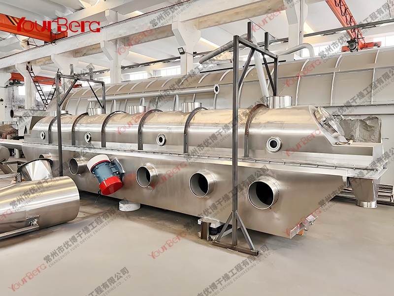 普通流化床干燥機在干燥顆粒物料時,可能會存在下述問題:(1)當顆粒粒度較小時形成溝流或死區;(2)顆粒分布范圍大時夾帶會相當嚴重;(3)由于顆粒的返混,物料在機內滯留時間不同,干燥后的顆粒含濕量不均;(4)物料濕度稍大時會產生團聚和結塊現象,而使流化惡化等。為了克服上述問題,出現了數種改型流化床,其中振動流化床就是一種較為成功的改型流化床干燥機。