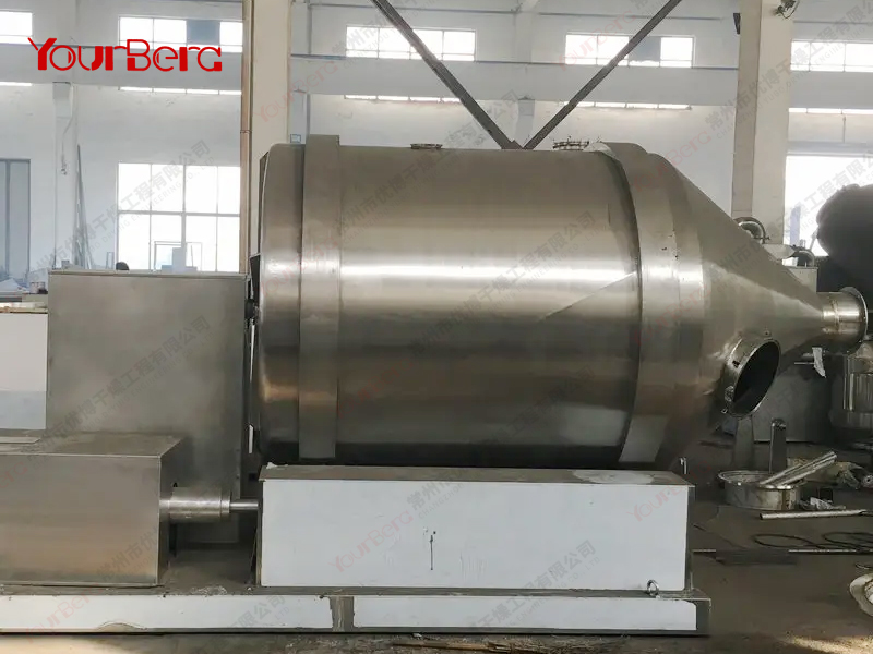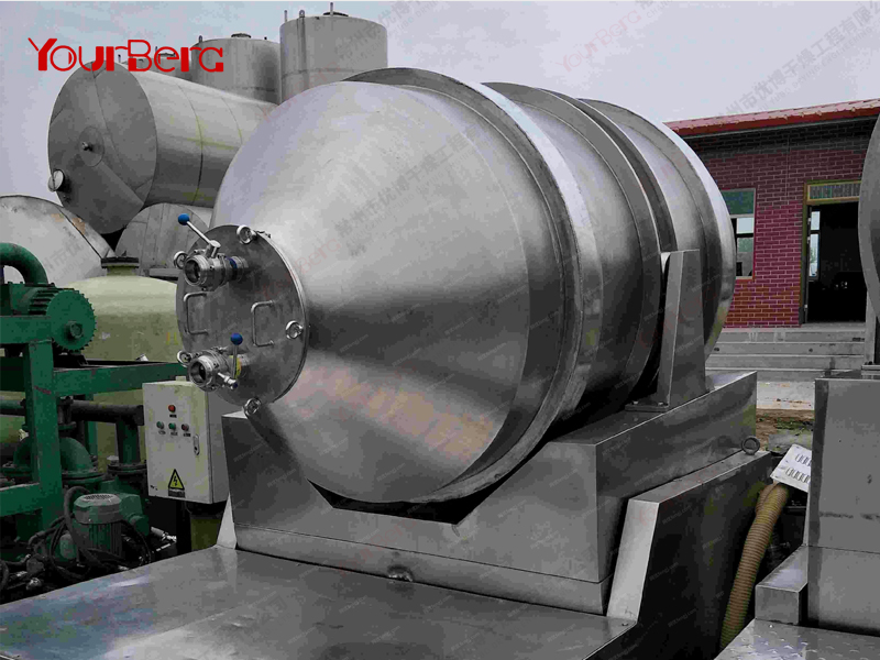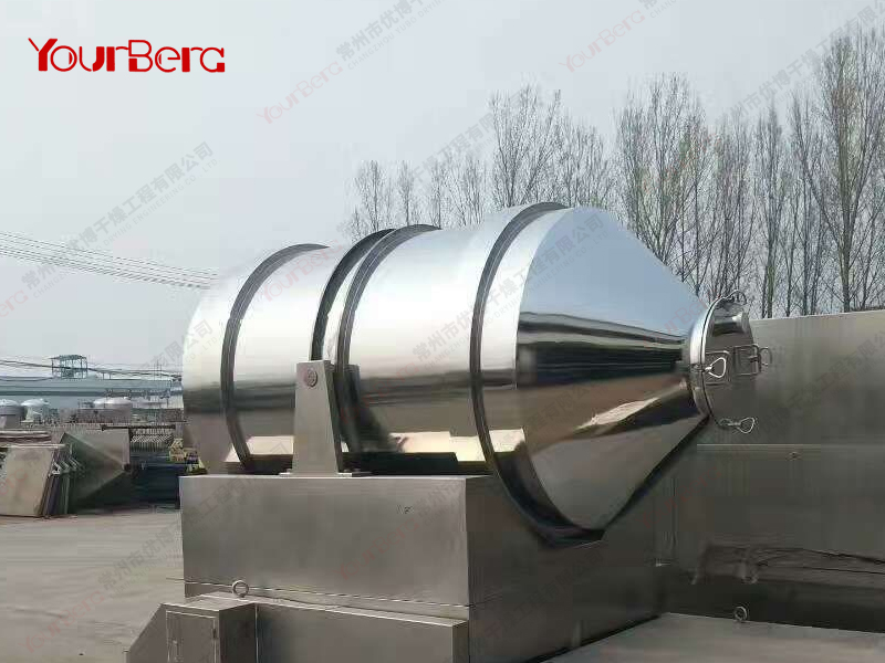 3、運轉時,裝料筒體繞中心軸做回轉運動(簡稱“一維運動”),而筒內物料作三維運動,故物料的混合精度可與二維,三維運動混合機相媲美。
