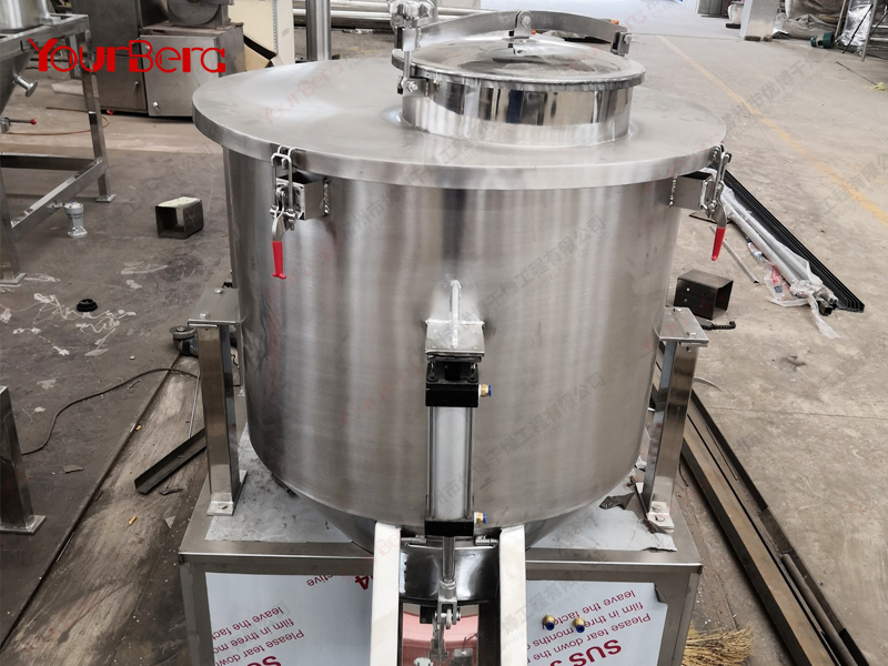 2、混合機在工作中由底部混合漿把物料源源不斷向上推送,再經中部切割刀切割分解,在混料桶內反復推送切割混合,從而快速高效均勻混合的目的。本機在以往的技術基礎上加以改進,上蓋用不銹鋼板制作,使上蓋打開幅度大,便于加料和清洗,圓封頭和混合桶連接處用硅橡膠密封條密封可有效防止物料在混合中泄漏。上蓋開啟時可用支撐桿支撐固定,支撐桿使用方便易于操作。